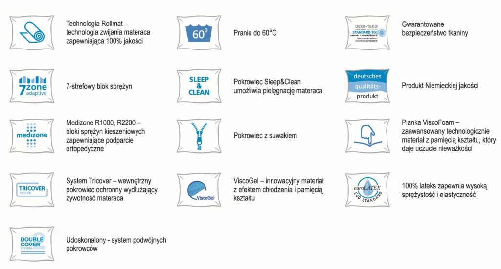 Na jakość tę ma wpływ odpowiedni dobór materiałów: od pokrowca po rodzaj sprężyn, pianek termoelastycznych i innych warstw z surowców naturalnych lub z dodatkiem bezpiecznych tworzyw syntetycznych. Odzwierciedleniem takiej koncepcji są materace z linii Synergy, w których zastosowano wiele innowacyjnych rozwiązań, mających realny wpływ na komfort snu, wygodę użytkowania, swobodę dostosowania modelu do potrzeb użytkowników. To sprawia, że materace Synergy Visco jak i Synergy OceanBlue będą wygodne oraz funkcjonalny przez lata. Potwierdzeniem jakości jest udzielana przez producenta 5-letnia gwarancja na wkład materaca.